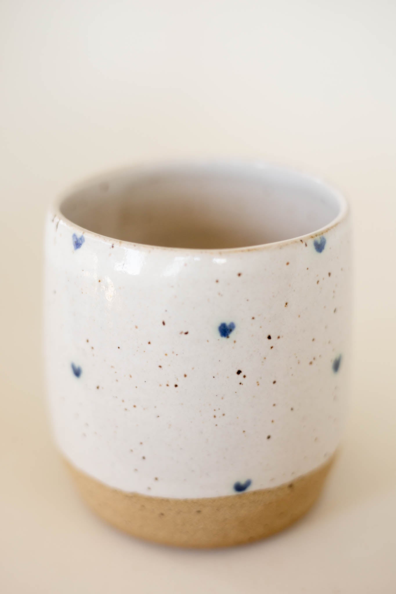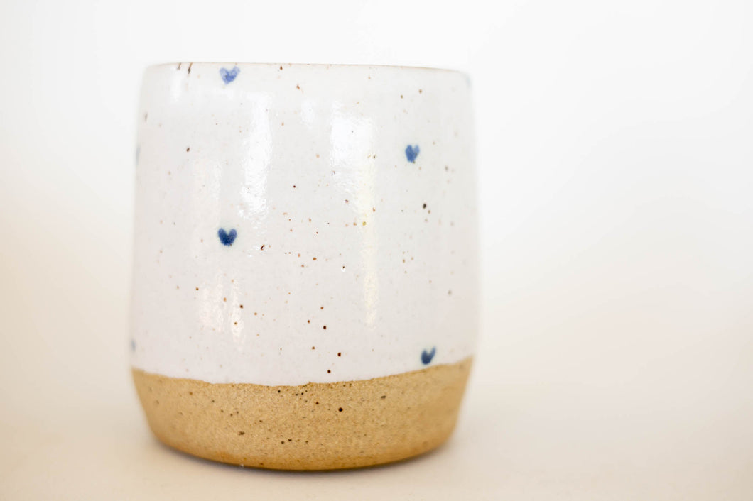 Hand thrown with love, these mugs were made with a speckled clay that makes it a joy to hold. If you’re one of those people who loves to drink out of a mug with texture, this mug is for you. With the raw clay exposed on part of the exterior, it makes any cup of tea taste that much better. This handless mug fits your hand like a glove with a comfy thumb imprint.